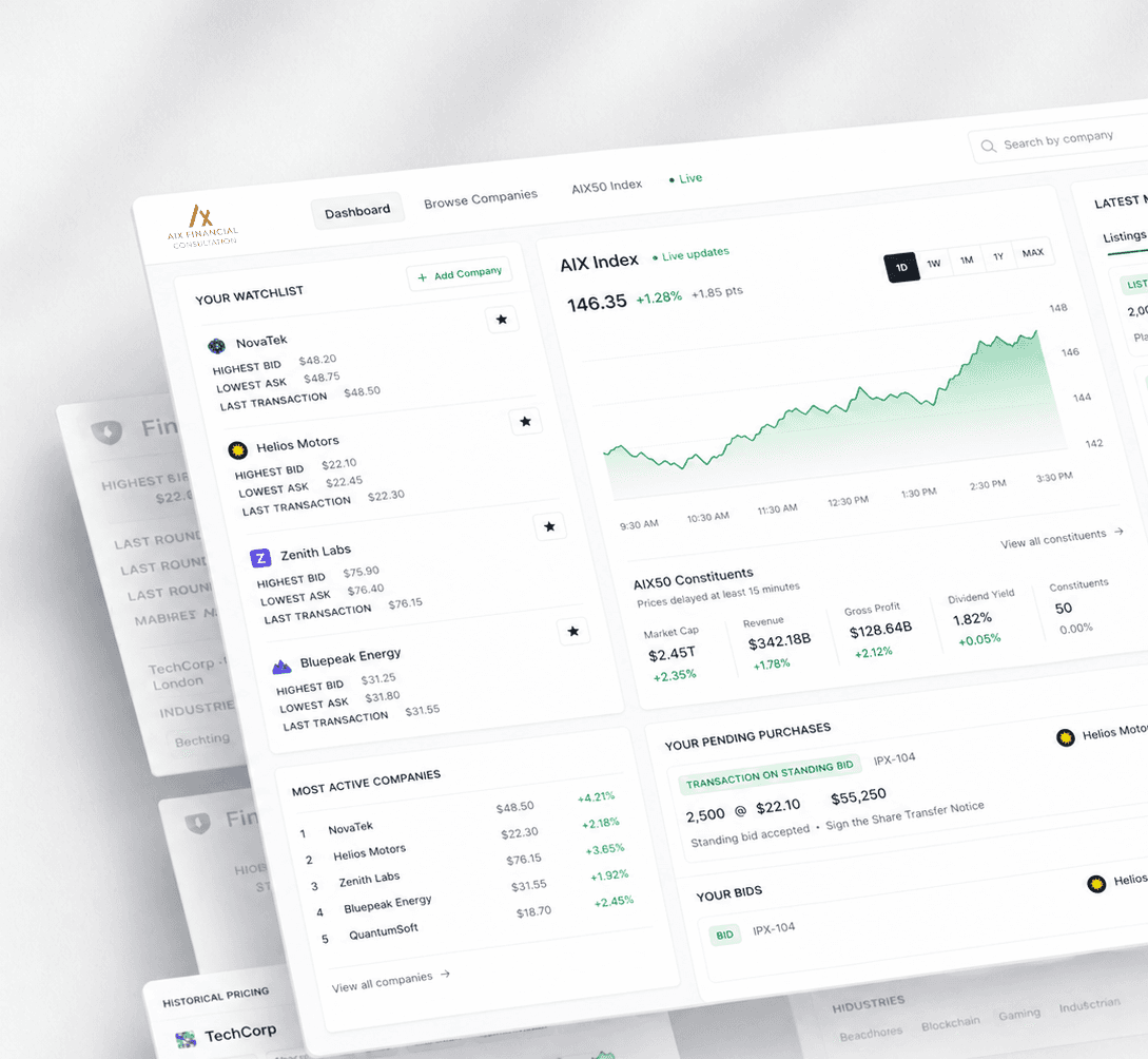 AIX Financial Consultation LLC is a financial advisory company incorporated in the United Arab Emirates, duly licensed by Dubai Economy and Tourism (DET) with license number 869463 and regulated by Capital Market Authority (formerly known as Securities and Commodities Authority – UAE), to promote financial products, introduce financial services and provide financial advisory for potential investors.